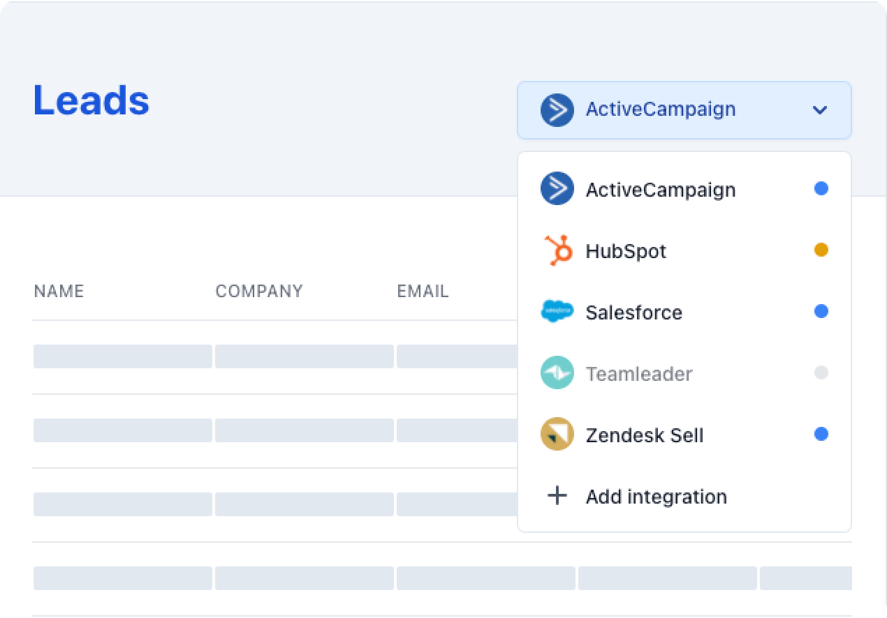 Create / update / delete leads from multiple services (e.g., Salesforce, HubSpot, etc.)